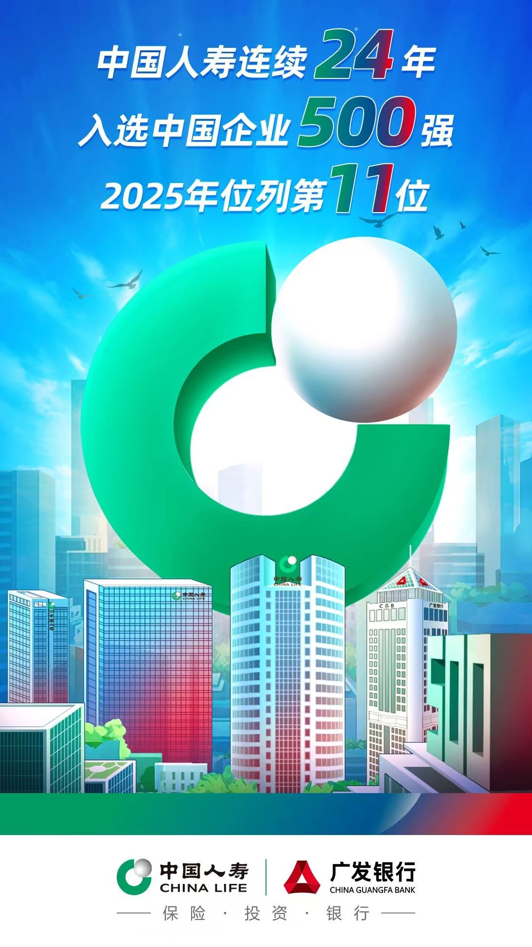 9月15日,中国企业联合会、中国企业家协会发布2025中国企业500强榜单,中国人寿连续24年入选,排名第11位,较去年上升6位,位列行业首位。